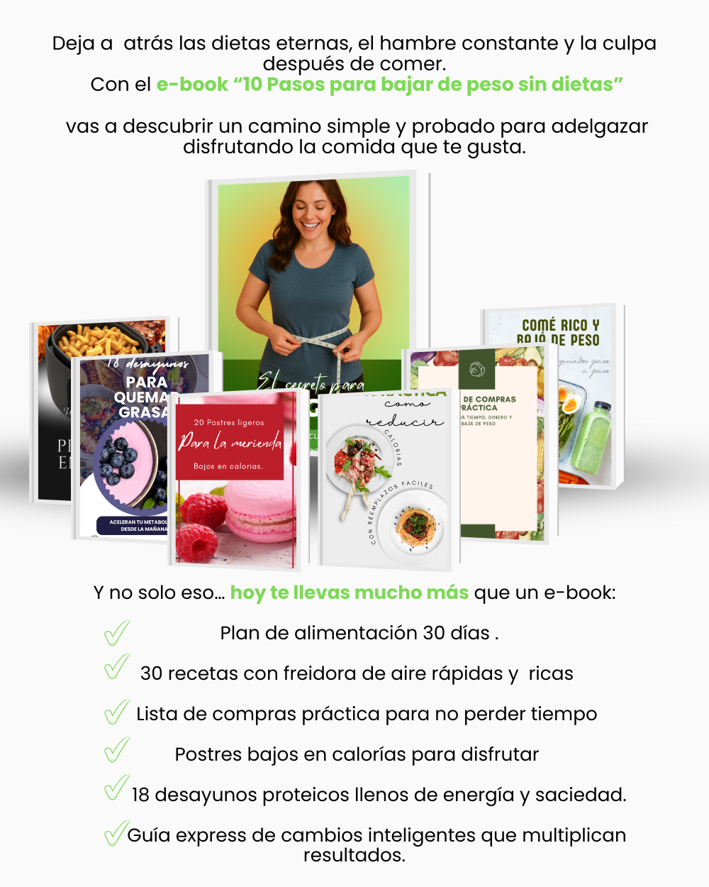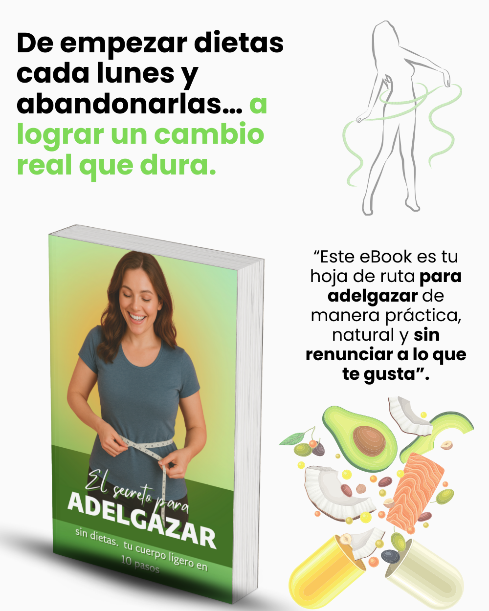 No. Justamente este e-book te enseña cómo bajar de peso sin dietas restrictivas, de manera natural y sostenible, sin dejar de disfrutar de la comida.