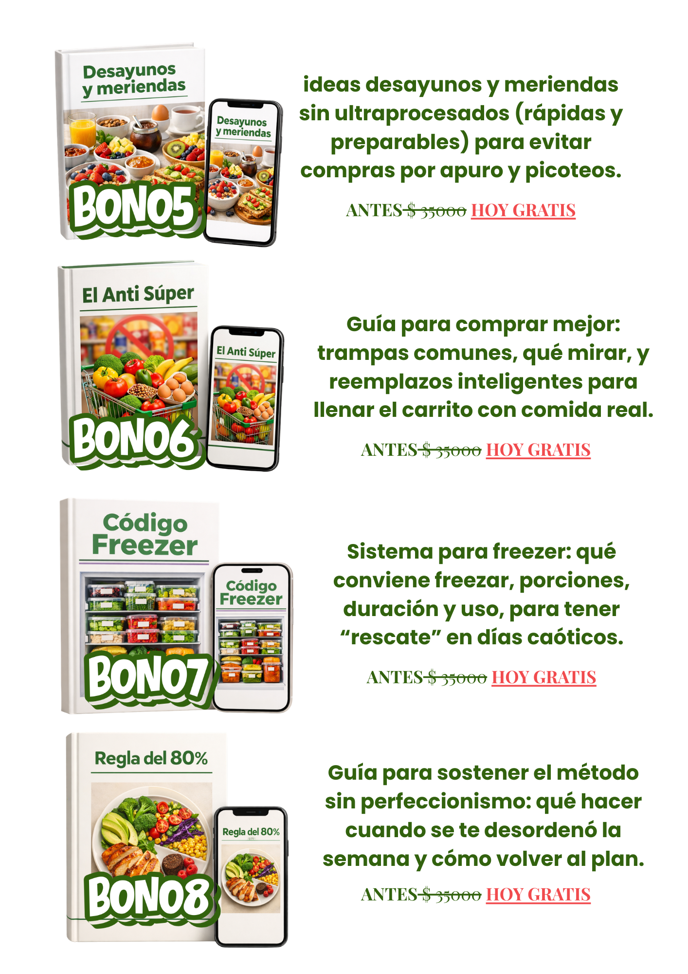 Lo mejor que compré este año. Soy mamá de 3 y trabajadora full time. Este método me dio orden y tranquilidad. Ya no llego cansada sin saber qué hacer de cena.